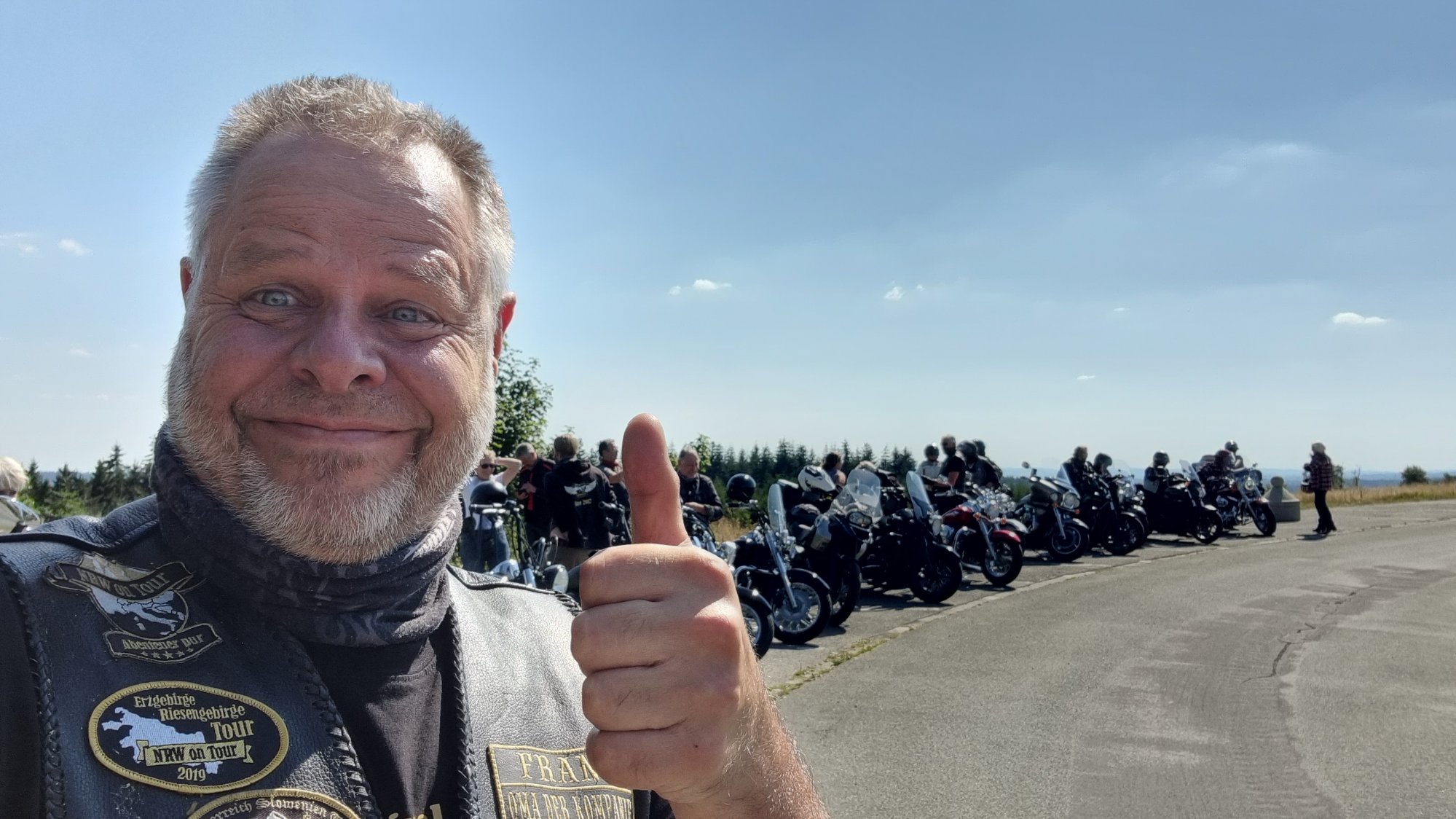 Bisher lief alles wie am Schnürchen. Tolle Route mit schönen Ausblicken, geile Leute und die Sonne brennt. Weiter so. Nur der Edersee hat wenig Wasser, das fällt schon deutlich auf.