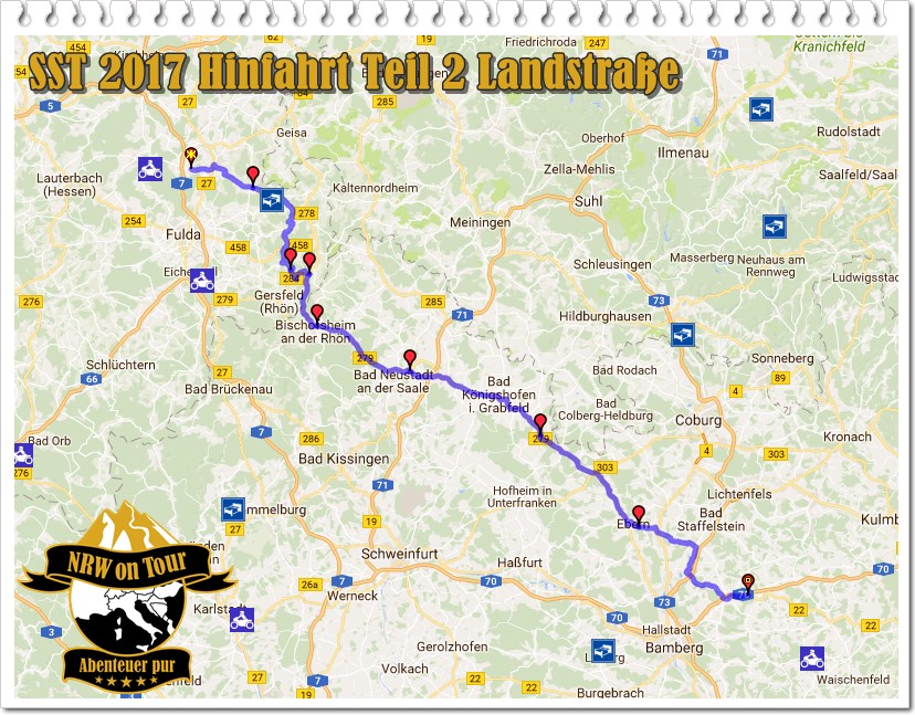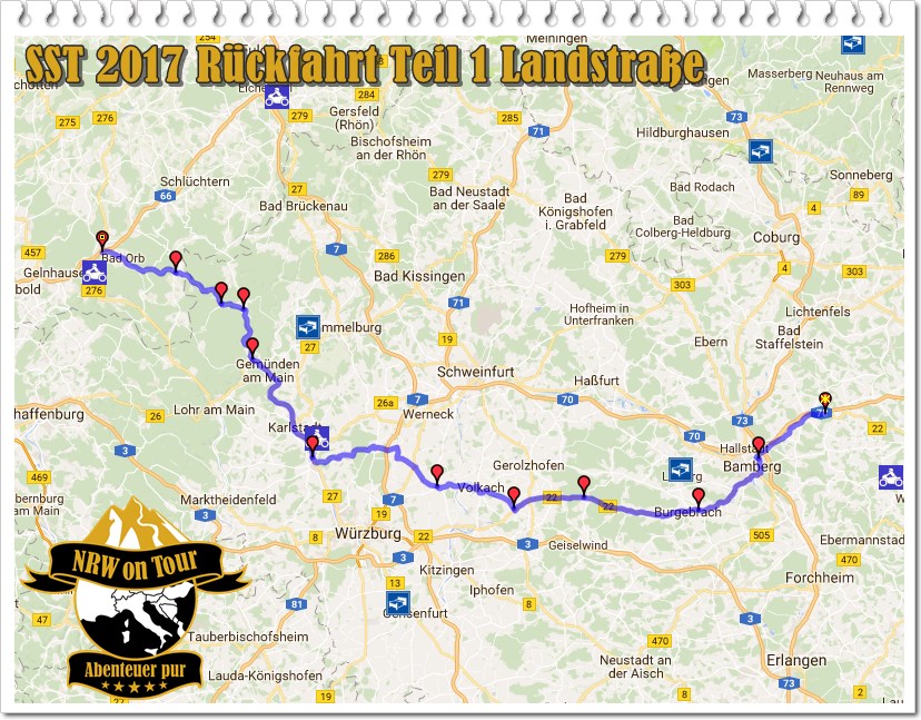Morgen in 2 Wochen ist es so weit, es geht zum 9. SST ins Fränkische. Für die Hin- und Rückfahrt haben wir wieder interessante Strecken rausgesucht, lasst Euch überraschen. Hier eine kurze Beschreibung, was auf uns zukommt.