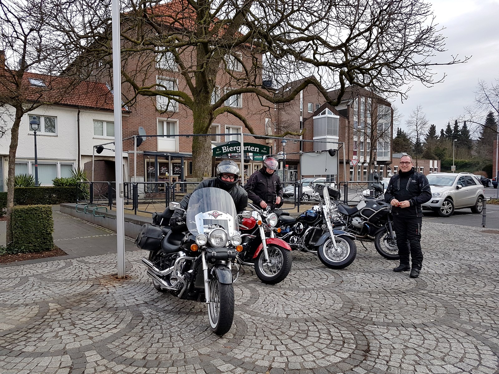 Aber ein paar harte Jungs sind trotz kühlem Wetter mit dem Moped angereist, cool…