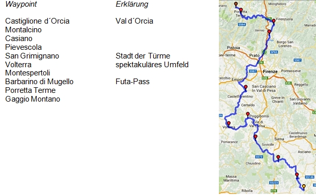 Apennin- / Toskanatour 2014 – Die Eckdaten